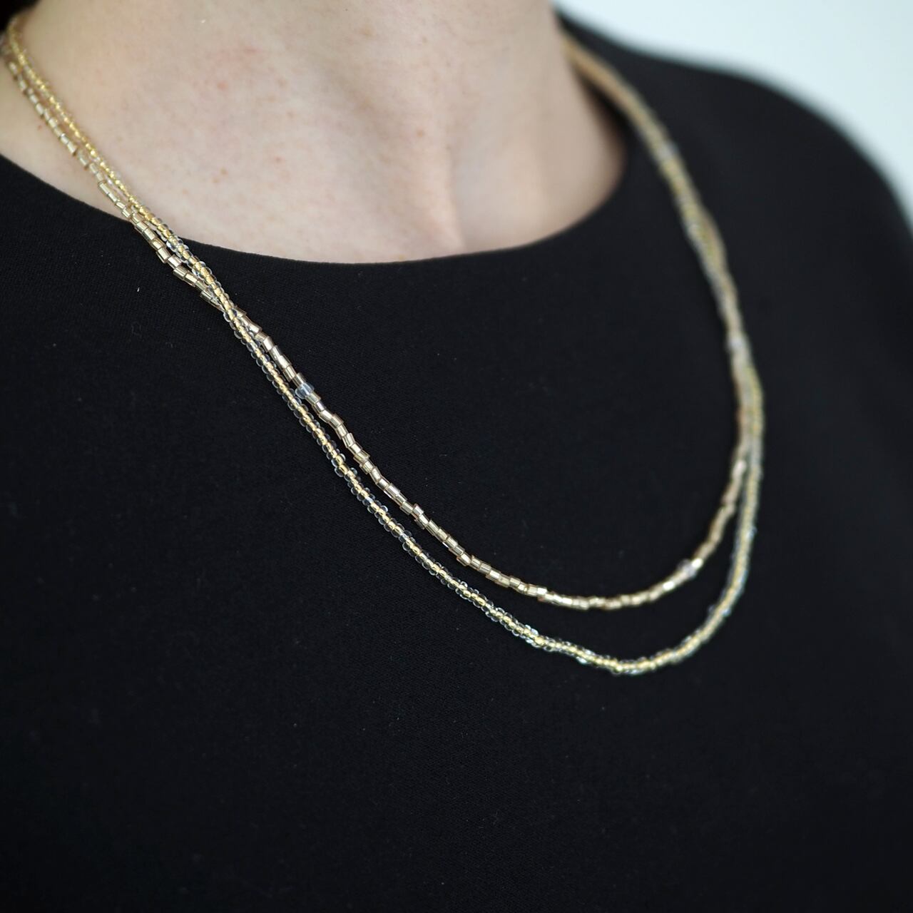 Contrasting two-tone effect: the intense sparkle of the 3-cut beads and the subtle sheen of the micro beads