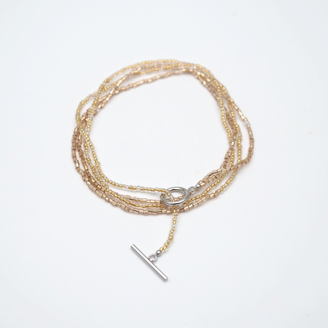 ・ご使用後は柔らかい布でやさしく拭いてください。強く擦るとビーズの色落ちや変色の原因となりますのでご注意ください